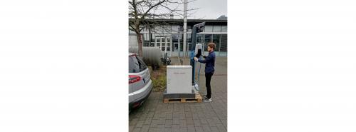 Mit dem Prototyp der Hochschule Koblenz sollen an der Straßenlaterne Ladegeschwindigkeiten erreicht werden, die sonst nur Schnellladesäulen bieten Quelle: Hochschule Koblenz/Stolz |
