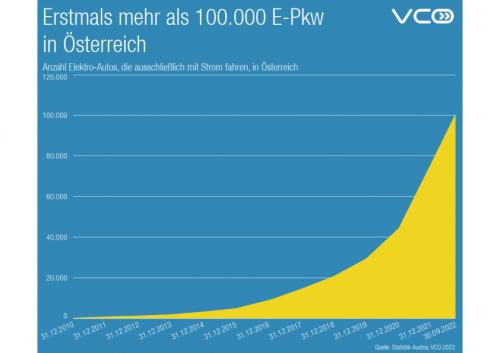 Aufholjagd in der Alpenrepublik: Wie der Verkehrsclubs Österreich (VCÖ) meldet, hat die Anzahl der E-Pkw im vergangenen Monat die 100.000er Grenze überschritten. Exakt 100.829 solcher Vehikel zählte man zum Stichtag 30. September. Der Anteil am gesamten Pkw-Bestand beträgt nach Angaben der Organisation jetzt 2