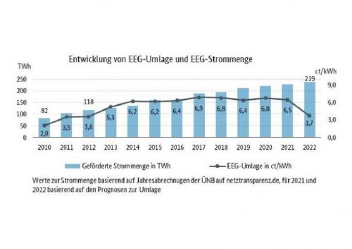 Kilowattstunde. Mit ihr werden Betreiber von Anlagen entlohnt, die erneuerbar Strom produzieren. Die Übertragungsnetzbetreiber haben nun unter Aufsicht der Bundesnetzagentur die EEG-Umlage für 2022 auf 3,723 Cent pro Kilowattstunde festgelegt. Diese hohe Absenkung um 43