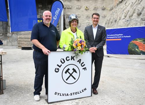 Ulrich Gommel (kaufmännischer Projektleiter bei EnBW, links), Tunnelpatin Sylvia M. Felder (Regierungspräsidentin Regierungsbezirk Karlsruhe) und Michael Class (Leiter Erzeugung Portfolioentwicklung der EnBW) Quelle: EnBW / Artis Uli Deck |