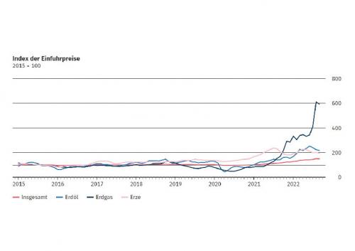 Den hohen Anstieg im Bereich der Energieeinfuhren führt Destatis weiterhin auf die starken Preissteigerung bei importiertem Erdgas zurück. Der Preis für nach Deutschland eingeführtes Erdgas war im September dieses Jahres mit einem Plus von 252