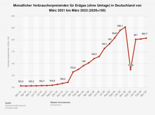Bundesamtes der Verbraucherpreisindex für Erdgas (ohne Umlage) in Deutschland bei einem Wert von 203,7
