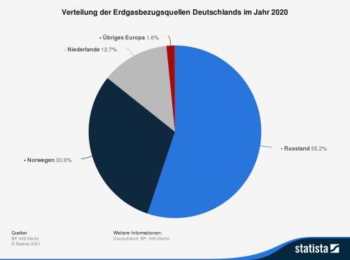 Deutschland bezieht den Großteil der Erdgasimporte aktuell hauptsächlich aus drei Ländern. Die russischen Erdgaslieferungen machten mehr als die Hälfte der Importe über Pipelines aus. Die zweitwichtigste Erdgasbezugsquelle für Deutschland ist Norwegen, gefolgt von den Niederlanden.