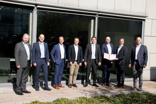 | Ziehen bei Photovoltaik an einem Strang (v.l.): Frank Oneseit (Vorstand Estw), Winfried Klinger (Geschäftsführer Stadtwerke Schwabach), Marcus Steurer (Geschäftsführer Infra fürth), Matthias Dollinger (Vorstand Gemeindewerke Wendelstein), Rene Lukas (Geschäftsführer Stadtwerke Stein), Michael Kolloch (N-Ergie) und Martin Grimmeisen (Infra Fürth), Norman Villnow (Geschäftsführer N-Ergie Regenerativ) Quelle: N-Ergie/Melissa Draa |