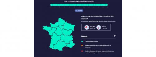 Internetseite, die der Netzbetreiber RTE im Januar eingerichtet hatte. Verbraucher können sich dort über die Netzauslastung in ihrer Region informieren. Für jede Region geht daraus hervor, ob das Netz „normal“ (grün) oder „stark“ (gelb) ausgelastet ist oder am „Rande einer Überlastung“ (rot) steht. In den letzten beiden Fällen sind Unternehmen und private Haushalte aufgefordert, ihren Verbrauch zu reduzieren und nicht in den Spitzenlastzeiten (8-13