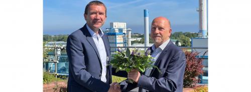 Führungswechsel: Volker Rattey (rechts) gratuliert seinem Nachfolger Gerald Schubert zur neuen Position Quelle: Stadtwerke Rostock Netzgesellschaft mbH |