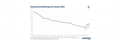 Die Entwicklung der Gaspreise seit Januar 2023 (zur Vollansicht bitte auf die Grafik klicken) Quelle: Check 24 |