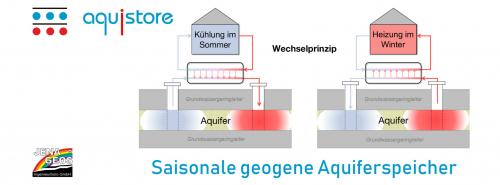 Aquifere können für Heiz- und Kühlzwecke genutzt werdenEbenfalls am Wasser, wenn auch in der Erde verborgen, hängen Aquifere, also grundwasserführende Schichten, deren Wärmemengen ebenfalls nutzbar sind. Sie sind längst dem Forschungsdasein entschlüpft und werden in mehreren Projekten deutschlandweit zur Gewinnung von Wärme und Kühlenergie genutzt. Sie sind eine der wenigen regenerativen Energieformen, mit denen jahreszeitliche Lastverschiebungen ausgeglichen werden können.