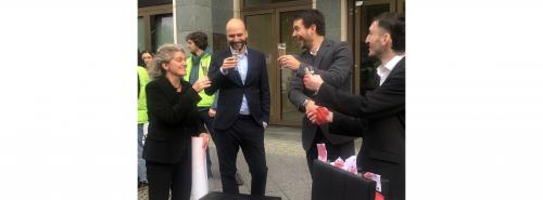 Blutige Hände, Geldkoffer, Schaumwein: die Protestaktion von Urgewald, DUH und Razom We Stand gegen das Russland-Engagement Wintershall Deas Quelle: Urgewald |
