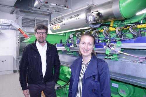 Thomas Baade und Marleen Marks (beide Hansewerk) wollen sich den eigens produzierten Wasserstoff sowohl in der Wärmeversorgung als auch im Mobilitätssektor zunutze machen Quelle: E&M/Oliver Ristau |
