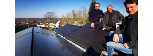 Über den Dächern Essens: Während die Kommune bereits ein Solarförderprogramm vorantreibt und Privatmann Christoph Fleischer (l.) zugreift, suchen die Stadtwerke noch ihren Platz auf den Häusern der Stadt. Reiner Priggen (Vorsitzender des LEE NRW) und Umweltpolitiker Yannick Lubisch (CDU, r.) sehen wichtige Signale für die lokale Energiewende Quelle: Volker Stephan |
