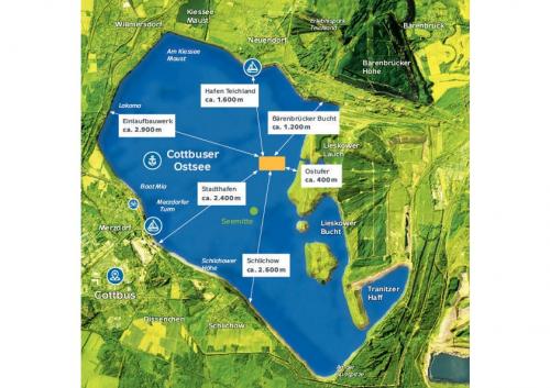 Lage der schwimmenden PV-Anlage auf dem künftigen Cottbuser Ostsee (zum Vergrößern bitte auf die Grafik klicken)