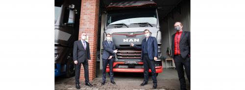 Um künftig jedoch vorbereitet zu sein, investiert MAN auch in die Entwicklung der Wasserstoff-Mobilität. Der bayerische Ministerpräsident Markus Söder (CSU) und Wirtschaftsminister Hubert Aiwanger (Freie Wähler) überreichten Vlaskamp an diesem Termin hierfür einen Förderbescheid über 8,2