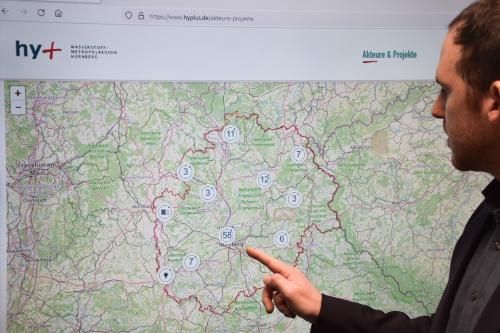 Das neue Label "Hy+" stellten die Stadt Nürnberg, die Kompetenzinitiative "ENERGIEregion Nürnberg e. V.", der Energie-Campus Nürnberg und das "Zentrum Wasserstoff.Bayern – H2.B" am 10. November der Öffentlichkeit vor. Unter dieser Wortneuschöpfung sollen künftig alle Wasserstoffkompetenzen der Metropolregion Nürnberg zusammenfließen. Über eine interaktive Karte auf der neuen Internetseite