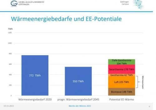"Die erneuerbaren Technologien sind alle bekannt", sagte BEE-Präsidentin Simone Peter. Die vielfältigen erneuerbaren Technologien in Gebäuden und Wärmenetzen müssten jetzt schnell umgesetzt werden: Wärmepumpen, Bioenergie aus Feststoffen oder Biogas, Solarthermie bis zur Geothermie. Letztere habe das größte Potenzial, unabhängig von Witterungsverhältnissen eine Wärme- oder Kältegrundlast zu liefern, sagte Prof. Inga Moeck, Professorin für Angewandte Geothermik und Geohydraulik an der Georg-August-Universität Göttingen.