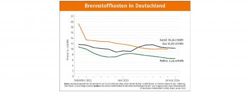 Brennstoffkosten in Deutschland bis Januar 2024 im Vergleich (zum Vergrößern bitte auf die Grafik klicken) Quelle: Deutsches Pelletinstitut GmbH |