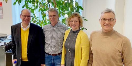 Bei der Unterzeichnung zur Gründung der Wärme Energie Großkrotzenburg GmbH (v. l.): der Geschäftsführer der EAM Natur Energie Andreas Brors, die Geschäftsführer der neuen Gesellschaft Markus Hardt und Katrin Rohmann sowie der Geschäftsführer der Gemeindewerke Großkrotzenburg Horst Prey Quelle: EAM |