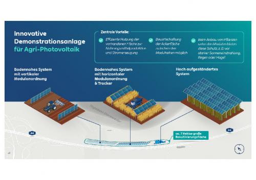 Dezember bekannt gab, will er mithilfe der Anlage geeignete Bewirtschaftungsmethoden und wertschöpfende Betreiberkonzepte für Agri-PV-Anlagen entwickeln. Bei der Agri-PV wird ein und dieselbe Fläche sowohl zur Solarstromerzeugung als auch für Acker- und Gartenbau genutzt.