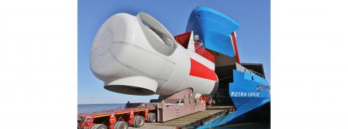 Eine in Cuxhaven hergestellte Offshore-Turbine von Siemens Gamesa wird verladen. Auch dieser Prozess soll bis 2040 klimaneutral werden, und zwar ohne Ausgleichsmechanismen, so eines der Nachhaltigkeitsziele Quelle: SGRE |