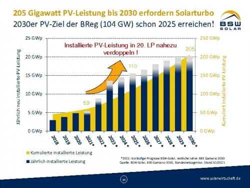 Notwendige Ausbauraten für Photovoltaikanlagen für die neuen Klimaschutzziele bis 2030 Zum Vergrößern bitte auf das Bild klicken Quelle: BSW |