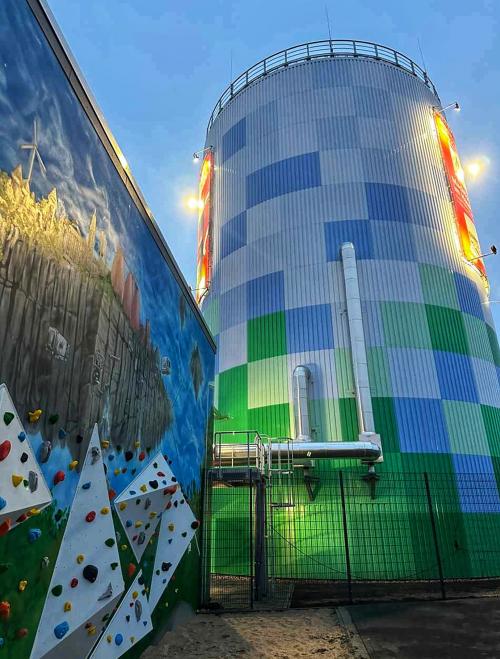 Der Wärmespeicher in voller Größe, links ist die Kletterwand zu sehen Quelle: SWK |