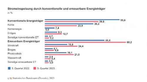 Prozent im 3. Quartal 2022) war die Windkraft der wichtigste Energieträger in der inländischen Stromerzeugung. Die Einspeisung von Strom aus Photovoltaik erhöhte sich um 6,6