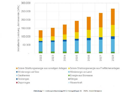 Prognose zur Leistungsentwicklung der EEG-Anlagen von 2022 bis 2028 - Zum Vergrößern bitte auf das Bild klicken Quelle: Enervis |