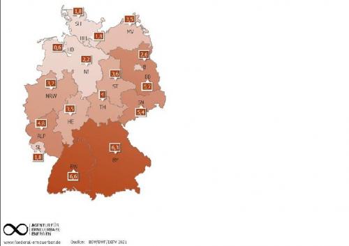 Anteil an Gebäuden mit Wärmepumpen-Heizung nach Bundesländern in Prozent im Jahr 2020 Zum Vergrößern bitte auf die Grafik klicken uelle: AEE |
