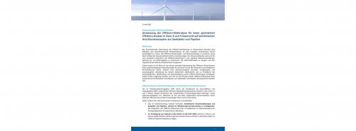 Das dreiseitige Positionspapier mit dem Titel „Umsetzung der Offshore-Elektrolyse für einen optimierten Offshore-Ausbau in Zone 4 und 5 basierend auf kombinierten Anschlusskonzepten aus Seekabeln und Pipeline“ ist auf der Internetseite der Initiative Aquaventus abrufbar.