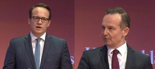 Markus Krebber (CEO RWE) (l.) und Volker Wissing (Bundesminister für Digitales und Verkehr) auf der Tagung Quelle: Handelsblatt |