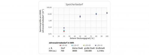 Jeder Quadratmeter Kollektorfläche spart jährlich etwa 50 Kubikmeter Erdgas oder bis zu 50 Liter Öl, hat seine eigene graue Energie in knapp einem Jahr amortisiert und spart dann bis zu 30 Jahre lang CO2 ohne nennenswerte Betriebsmittel und Hilfsenergie. Für alle Fernwärmenetze Deutschlands mit bis 2040 vielleicht einmal 200 Mrd. kWh wären 2,7 Kubikkilometer Speicher und 700 Quadratkilometer Grundfläche notwendig, 0,18 % der Fläche Deutschlands und nur 2,8 % der bisherigen Biomasseanbaufläche laut Zahlen des Bundesverbands Agrarhandel.