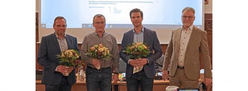 Wechsel bei der TWF: (v.l.) Jens Schulze, der ausgeschiedene Jörg Schneider, Daniel Wirth und OB Uwe Rumberg.