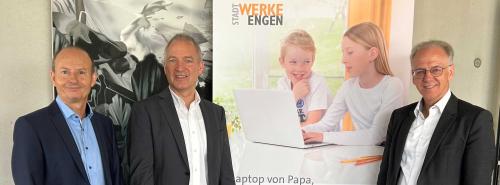 Die alte und neue Spitze der Stadtwerke Engen GmbH (von links): die Geschäftsführer Peter Sartena und Thomas Freund sowie der scheidende Aufsichtsratschef und Bürgermeister Johannes Moser Quelle SW Engen |