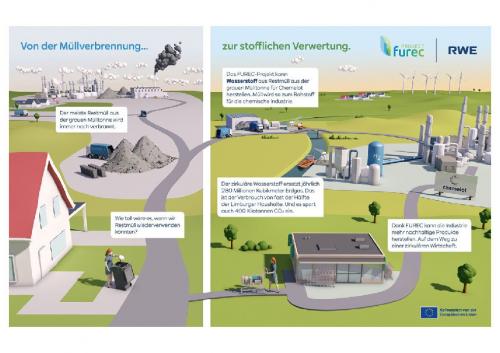 Furec ist die Abkürzung für "Fuse Reuse Recycle". Im Rahmen des Projektes arbeitet RWE an der Wasserstofferzeugung mithilfe von Abfällen. Als "Paradebeispiel für die Kreislaufwirtschaft" und "Blaupause für andere Standorte" sieht Miesen das Projekt: "Die Förderzusage des EU-Innovationsfonds unterstreicht, dass RWE mit diesem Projekt einen wichtigen Beitrag zur Dekarbonisierung der Wirtschaft leisten kann."