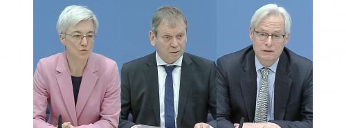 Präsentation des Expertenrats für Klimafragen (v.li.): Brigitte Knopf (stv. Vorsitzende), Hans-Martin Henning (Vorsitzender) und Mitglied Thomas Heimer Quelle: E&M / S. Harmsen |