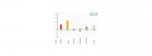 - Der Erdgasverbrauch erhöhte sich um 4,7 Prozent. Neben dem witterungsbedingten Anstieg im Wärmesektor war dafür auch der gestiegene Einsatz zur Stromerzeugung verantwortlich (+8 Prozent).