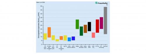 Die Studie des Fraunhofer-Instituts für Solare Energiesysteme ISE vergleicht die Strom-Gestehungskosten verschiedener Technologien. Im