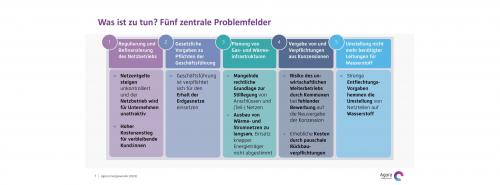 Die Zukunft des Gasnetzes werde zunehmend ungewiss. Überregional müsse ein Transportnetz aufrechterhalten werden, welches zunächst noch Erdgas transportiert, perspektivisch aber teilweise für den Transport von Wasserstoff umgewidmet werde. Auf Verteilnetzebene hingegen werde es flächendeckend zu Stilllegungen kommen: „Hier gilt es Lock-ins zu vermeiden und die jährlichen Investitionen in das Netz von derzeit rund 1,5