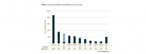 Windkraftneuinstallationen im ersten Halbjahr 2025 in Europa (Für Vollansicht bitte auf die Grafik klicken) Quelle: Wind Europe |