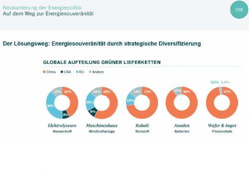 Das gemeinsame Impulspapier stammt von Prof. Stefan Bayer, Leiter Forschung des German Institute for Defence and Strategic Studies (GIDS), Jana Puglierin, Leiterin des Berliner Büros des European Council on Foreign Relations (ECFR), und Prof. Guntram Wolff, Direktor der Deutschen Gesellschaft für Auswärtige Politik (DGAP). Ihre Handlungsempfehlungen sollen einen Weg zu größtmöglicher Energiesouveränität durch erneuerbare Energien aufzeigen. Dafür müssten auch die Produktionsstätten und Rohstoffe erneuerbarer Energien gesichert werden. „China ist die energiepolitische Supermacht nicht nur der alten, sondern auch der neuen Welt“, so Puglierin.