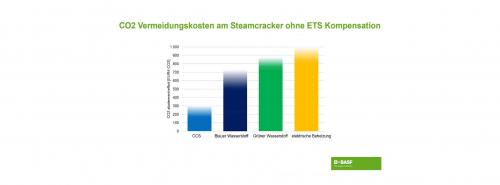 Kostenvergleich der CO2-Vermeidung am Dampfcracker bei BASF. Zur Vollansicht bitte auf die Grafik klicken Quelle BASF |