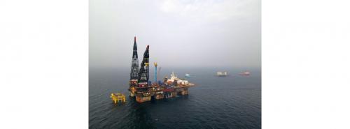 Vom Installationsschiff Thialf aus wurde die Baltic-Eagle-Offshoreplattform auf das Fundament gehoben Quelle: 50 Hertz/Visavis |