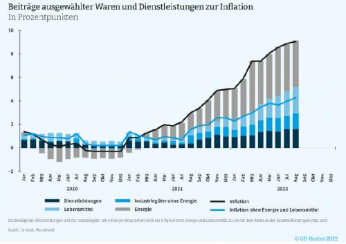 | Energiepreise als Haupttreiber der Inflation - Zum Vergrößern bitte auf das Bild klicken. Quelle: GD Herbst 2022 |