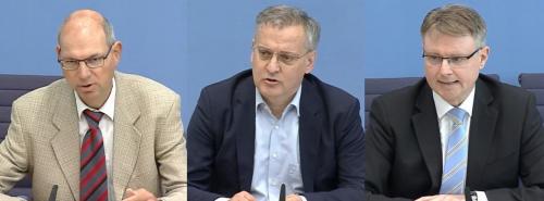 Die Wirtschaftsweisen bei der Vorstellung der Herbstprognose: v.li.: Klaus Weyerstraß (IfHS Wien), Torsten Schmidt (RWI Essen) und Stefan Kooths (IfW Kiel) Quelle: BPK |