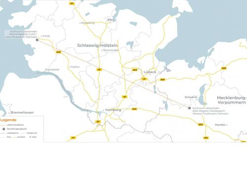 MW geplant. Im Zuge eines mehrjährigen Planungs- und Genehmigungsverfahrens der Bundesnetzagentur wird derzeit der genaue Verlauf der Leitung ermittelt und festgelegt.