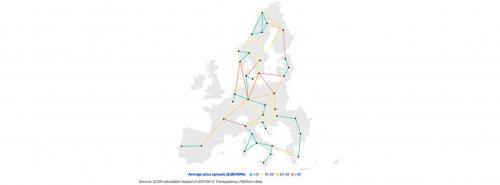 Durchschnittliche Preisunterschiede im grenzüberschreitenden Stromhandel 2024 (Für Vollbild bitte auf die Grafik klicken) Quelle: Acer |