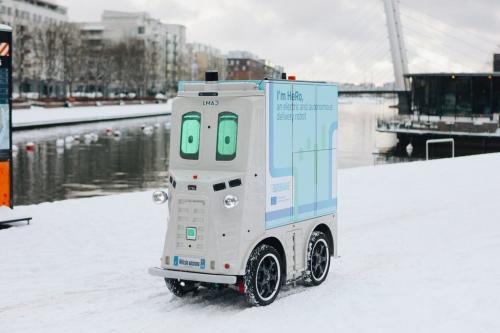 Vor allem in der Weihnachtszeit sind die Paketschließfächer voll, und diejenigen, die sich für die Lieferung nach Hause entschieden haben, müssen dort stundenlang warten. Das Unternehmen der Stadt Helsinki, Forum Virium Helsinki, testet nun in der Vorweihnachtszeit einen autonomen Roboter mit dem Namen HeRo (Helsinki Robot), um die Zustellung auf der letzten Meile zu vereinfachen. Der Roboter ist in der Lage, Pakete innerhalb einer Stunde an die Haustür der Kunden zu liefern. Hero ist ein elektrischer, sprechender und autonom fahrender Lieferroboter der Firma LMAD. „Wir haben die Funktionalität und die Akzeptanz von Hero zum ersten Mal im Bezirk Kalasatama im Mai und August getestet, als der sprechende Roboter Werkzeuge vom Würth-Center auf die nahe gelegenen Baustellen lieferte“, sagt Projektleiter Satu Reijonen vom Forum Virium Helsinki.