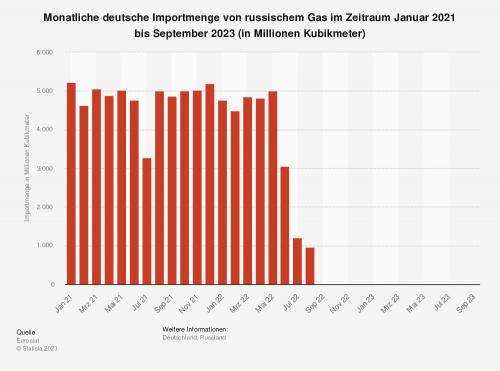 August 2022 die Gaslieferungen nach Deutschland eingestellt. Zuvor wurden die Gaslieferungen seitens Russlands schrittweise gedrosselt, wie die Grafik auf Basis von
