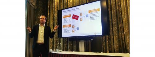 Lukas Ebner vom Analysehaus Enervis erklärte in Bad Driburg die aktuell lohnenswertesten Geschäftsmodelle mit Großspeichern Quelle: E&M / Volker Stephan |
