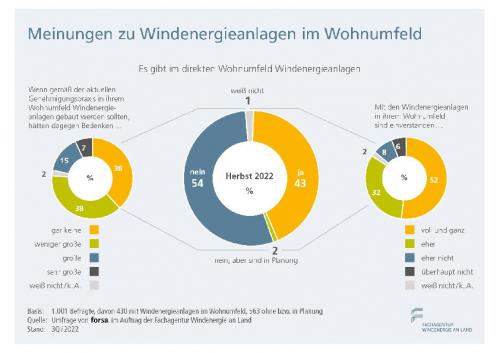 Fachagentur Windenergie an Land. Demnach haben drei Viertel der Befragten keine oder nur geringe Bedenken gegen Windkraftanlagen in ihrer Nähe, wenn der Zubau für ihren Wohnalltag eine Premiere wäre. Existieren bereits Windräder im Wohnumfeld, wie das 43